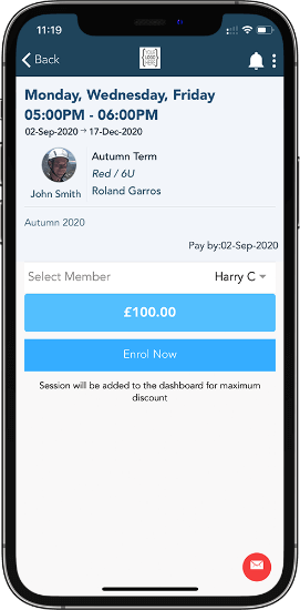 Player may forget their wallet, but never their phone – never miss a lesson payment!